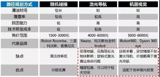 目前實現(xiàn)自主規(guī)避障礙&規(guī)劃路線的掃地機器人的技術(shù)路徑主要有兩類,機器視覺技術(shù)和激光雷達導(dǎo)航技術(shù)。基于機器視覺的掃地機器人,指通過攝像頭獲取圖像,通過算法實現(xiàn)規(guī)劃路徑、躲避障礙。