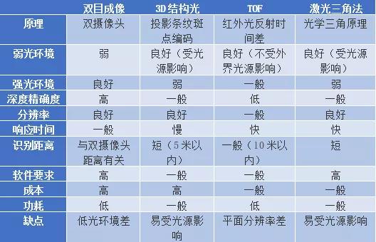 對(duì)于這四種3D視覺原理各自的優(yōu)缺點(diǎn)
